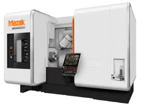 With full 5-axis capability, the machine easily processes round parts with secondary operations, fully prismatic parts from solid blocks or castings (chucked or bar fed work), or highly contoured sculptured parts.