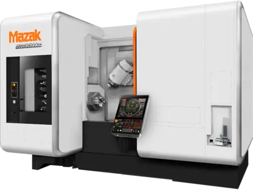 Additionally, the machine brings dramatic reductions in lead-time and improves part accuracy through the elimination of multiple setups. With full 5-axis capability, the machine easily processes fully prismatic parts from solid blocks or castings (chucked or bar fed work), round parts, or sculptured parts such as aerospace components.