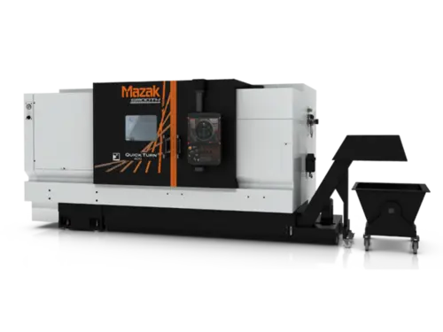 The machine features a standard, large spindle bore capacity of 5.2" for a variety of through-hole applications. The standard 50-hp integral turning spindle motor allows the QUICK TURN 400 to process a wide range of medium or larger-diameter parts.