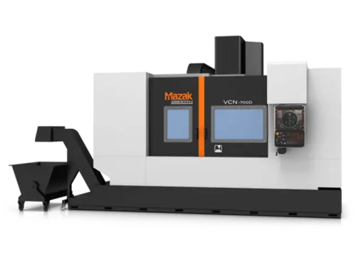 Made in Kentucky, the VCN-700D vertical machining center brings advanced technology, performance and value to high-speed, heavy-torque machining applications. The machine features a traditional C-frame design, vibration-dampening, rigid base and headstock/column castings for extreme stability. A 40-taper spindle provides an effective and productive balance of speed and torque for heavy-duty and high-speed cutting of aluminum and other non-ferrous materials.
