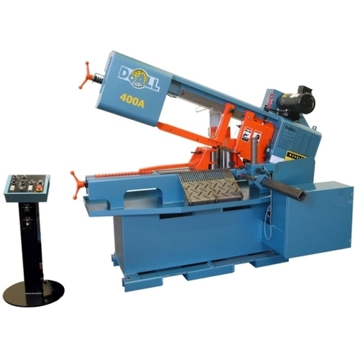 400A features automatic indexing, pneumatic head lift and hydraulic feed control. Band tensioning is easily set by handwheel to 30,000 psi for more accurate cutting. Standard infinitely variable band speed adjustment from 50 to 400 fpm (15 to 120 mpm)