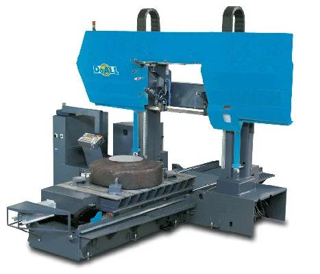 The DC-850CNC Hercules™ high production table saw from DoALL is a highly efficient, automatic, large format machine designed with a moving feed table for extremely heavy material. This dual column saw utilizes a bi-directional blade and automatic feed control with programmable feed rates. Optional accessories are available to customize the machine for specific sawing requirements, including the option for a larger band blade size.
