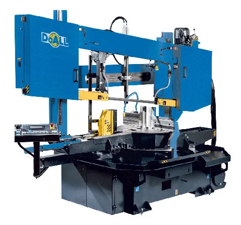 The DoALL DCDS-600SA high production, horizontal StructurALL®, semi-automatic, dual column, dual mitering metal cutting band saw offers up to 16x24″ (440x600mm) rectangular cutting capacity and 18-1/2″ round capacity.
