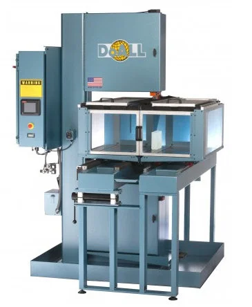 Designed to cut friable, brittle or materials that easily crumble, the DoALL 2616-D24 vertical diamond band saw features a hydraulically powered work table. The 2616-D24 upright saw has a cutting capacity of 26″ x 16″ (660x440mm) and a 24" (610mm) table stroke. The 2616-D24 diamond saw features an easy-to-use operators panel resulting in reduced operating costs, less maintenance and lower total cost of ownership.