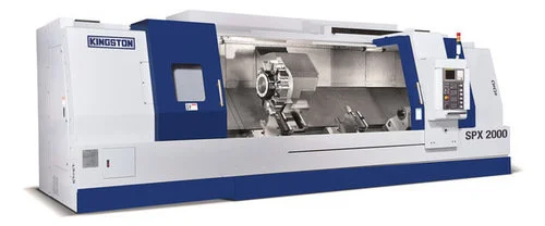 The SPX-35 (formerly the SPX-10) is the cornerstone of Kingston’s large-format slant bed line. Features include 35.4” swing over bed (27.5” max turning), bed lengths to 200”, and available bore sizes up to 10.1”. Optional C-Axis and Y-Axis capability combined with the APT 60 V12 Live Tooling Turret makes the SPX-35 a powerful yet versatile solution for heavy-duty cutting, milling, drilling operations on a slant bed lathe. Our 12-position servo turret is specially designed with a 2- piece large diameter Hirth-type coupling for strong clamping force and high-loading capacity while delivering precise positioning. Each SPX is run by Fanuc’s reliable 0iTF controller with Arbitrary Speed Threading included as standard.